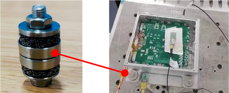 图11 金属橡胶隔振器及电子变送器隔振应用