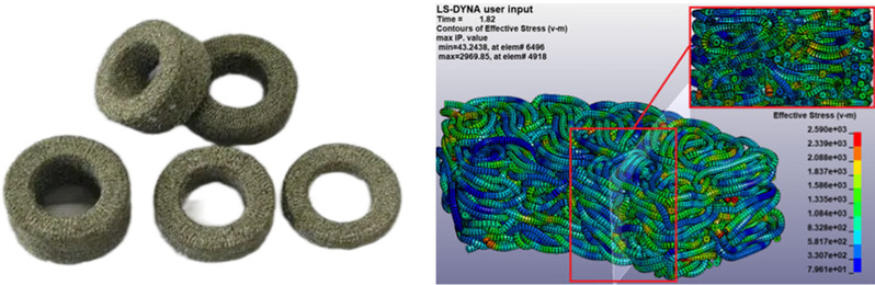 团队与中船集团等单位合作,研制了金属橡胶隔振器,相对传统橡胶,具有耐高低温、耐油污、耐氧化、耐辐射、高寿命、性能稳定等优势;相对传统弹簧,具有体积小、布置灵活、三向隔振、具有内阻尼等优势。已获得2000余套金属橡胶减振器订单,总金额超200万元。