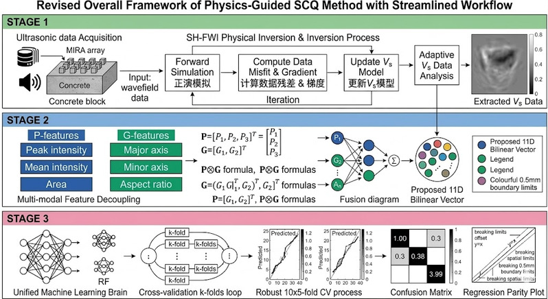 该方向研究融合物理模型与机器学习算法的结构健康监测方法。通过结合波动传播理论、数值模拟与数据驱动模型,构建能够解释结构损伤机理的智能分析框架,实现对结构裂缝发展、损伤演化及结构退化的高精度识别与预测。研究重点在于物理约束与深度学习方法的结合(Physics-informed AI),为基础设施长期运维与安全评估提供智能化技术支持。