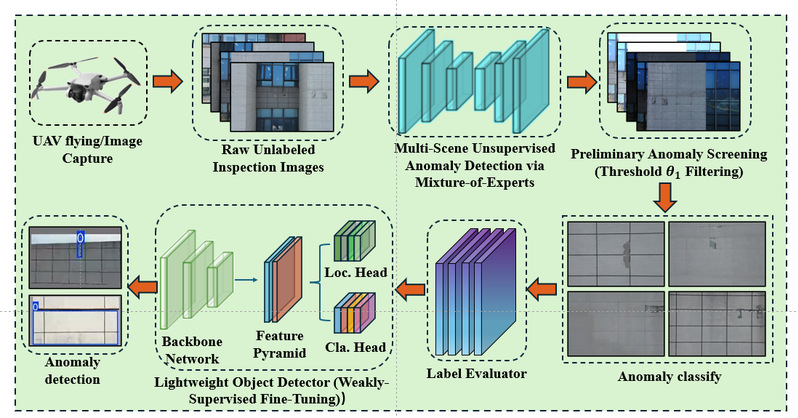 该方向研究基于无人机平台的建筑与基础设施智能巡检技术。通过无人机获取高分辨率图像数据,结合深度学习与计算机视觉算法,实现对建筑外立面裂缝、剥落、空鼓等缺陷的自动识别与定位。研究重点包括建筑缺陷检测算法、无人机视觉检测系统以及大规模建筑巡检数据分析。相关研究可应用于城市建筑巡检、外墙安全评估及基础设施智能运维。